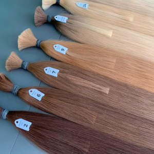 Bulk hair is usually taken by experienced craftsmen or manufacturers who make extensions themselves. From bulk hair, you can produce Tape-in, WEFT (Sewn in), various Fusion extensions, as well as wigs and hairpieces. If you are interested in buying bulk hair, we recommend choosing our company. A company that is engaged in the production of Slavic hair extensions and has been supplying hair to its customers around the world for more than 6 years.