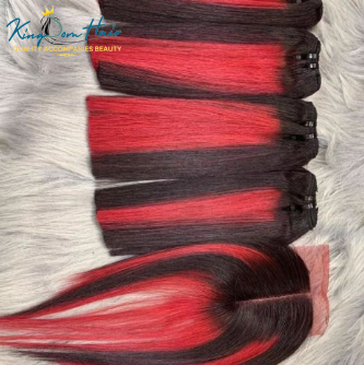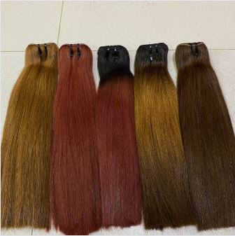 Weft Straight Human Hair Extensions: brown,orange, yellow